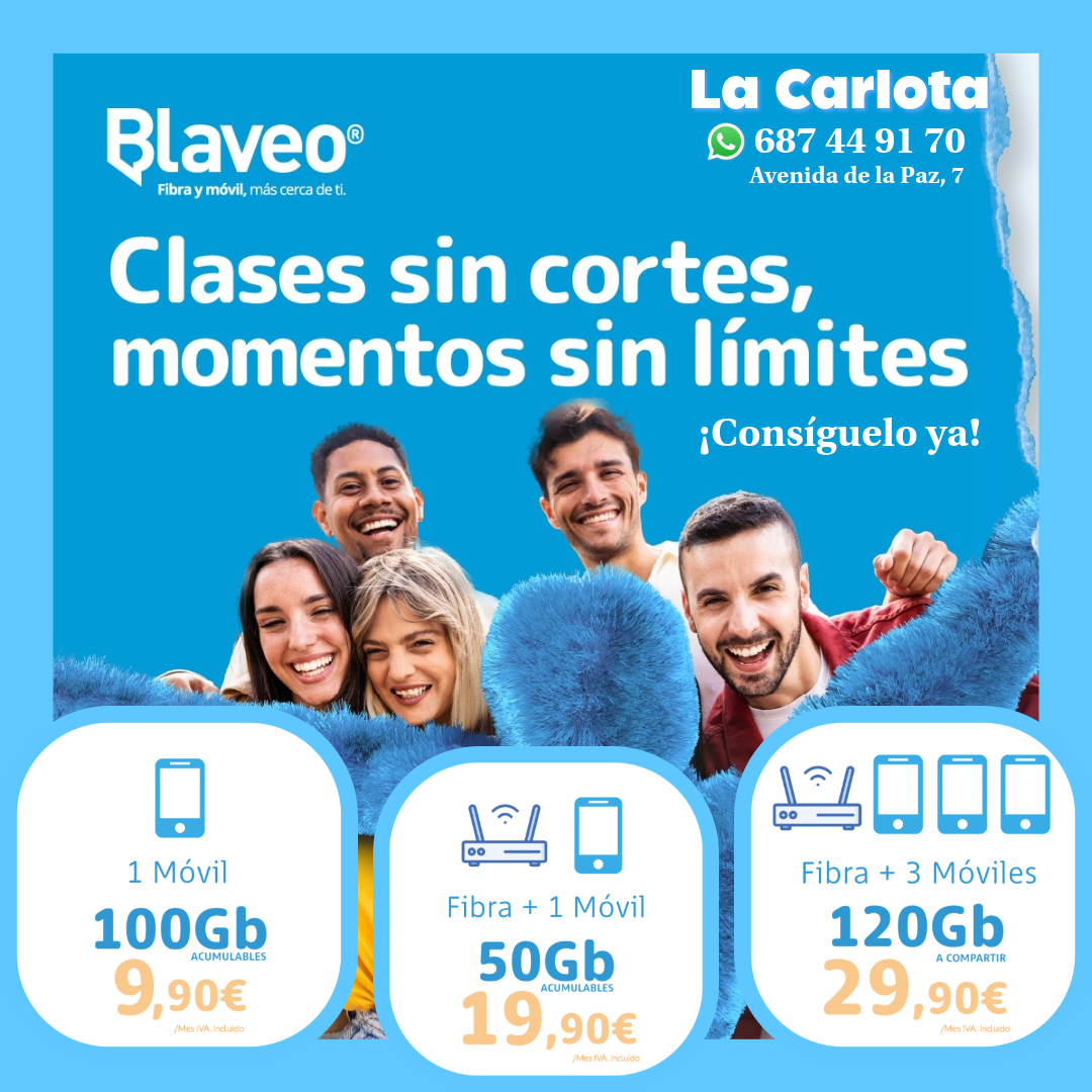 Sabemos que la Feria es sinónimo de fotos, vídeos y videollamadas con los que no pueden estar. Para que compartas cada instante sin preocupaciones, recuerda que Blaveo te ofrece la mejor fibra y móvil con tarifas que se adaptan a ti.